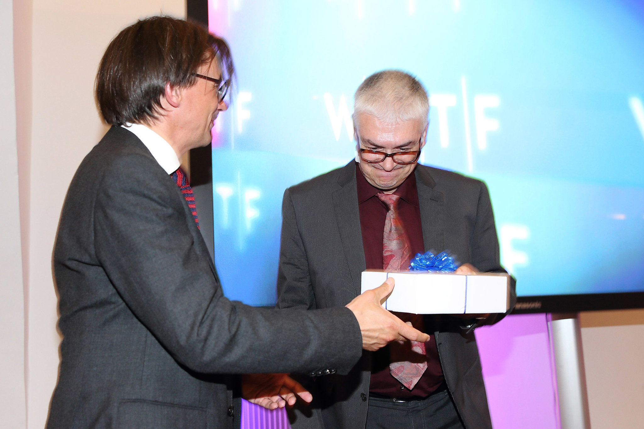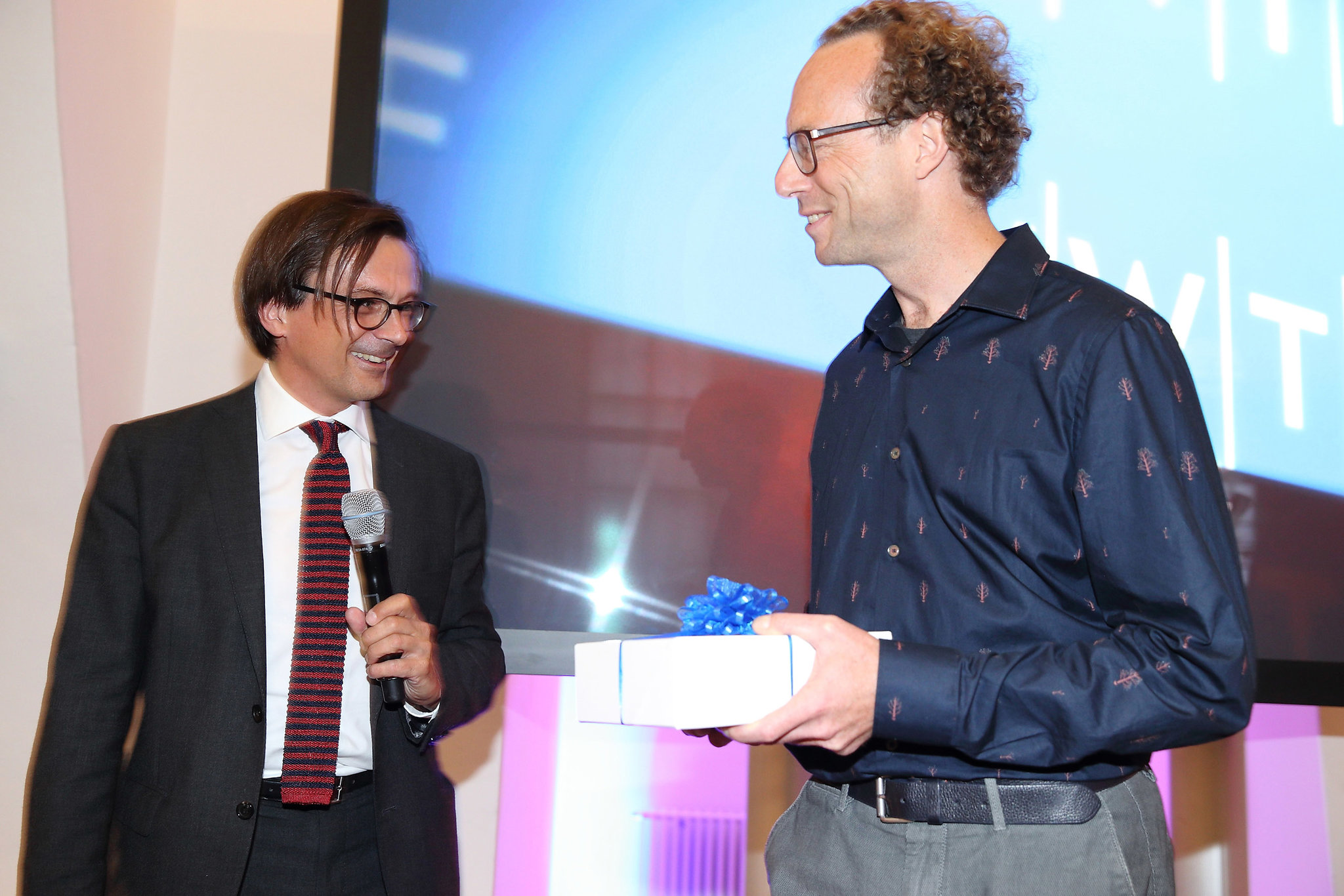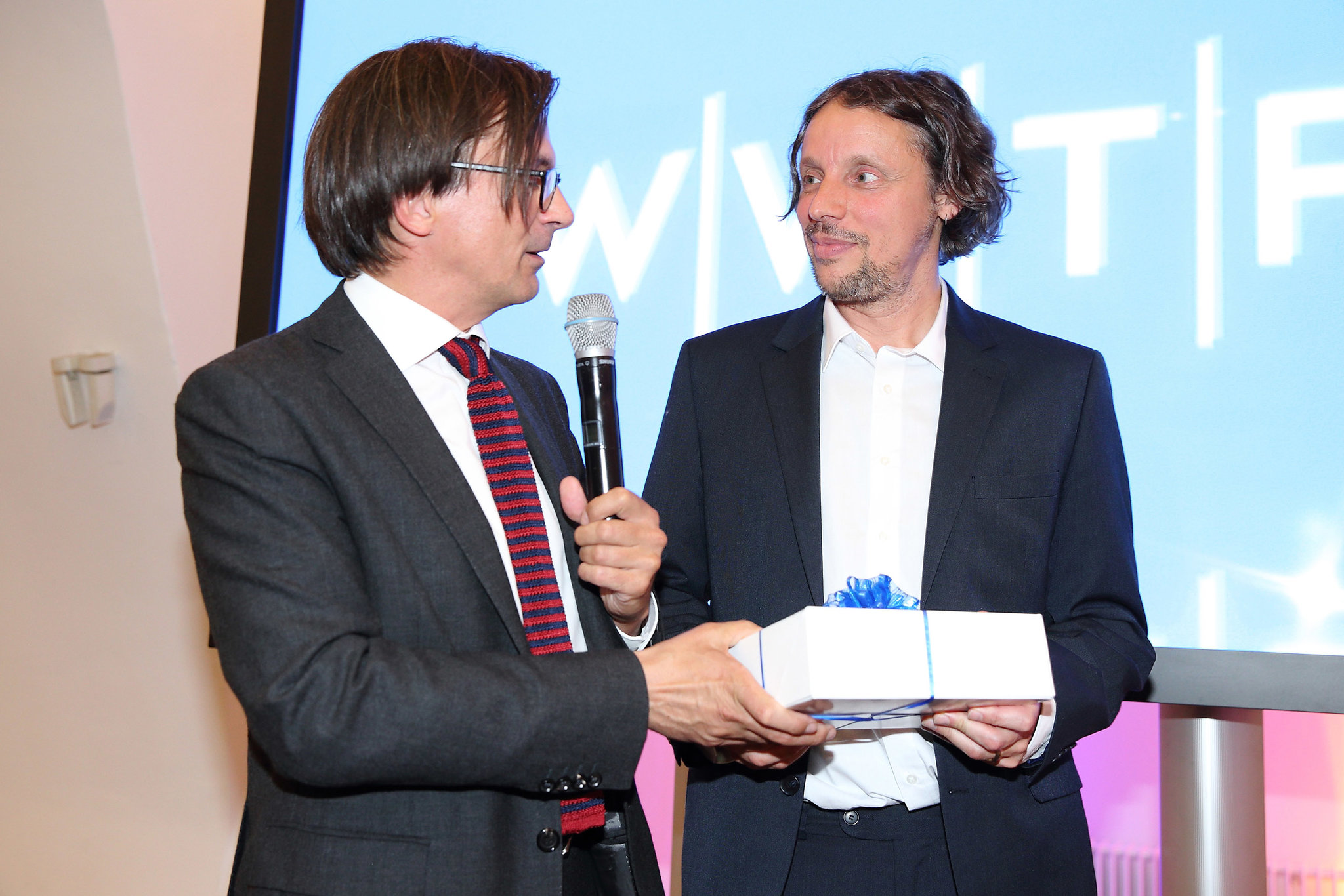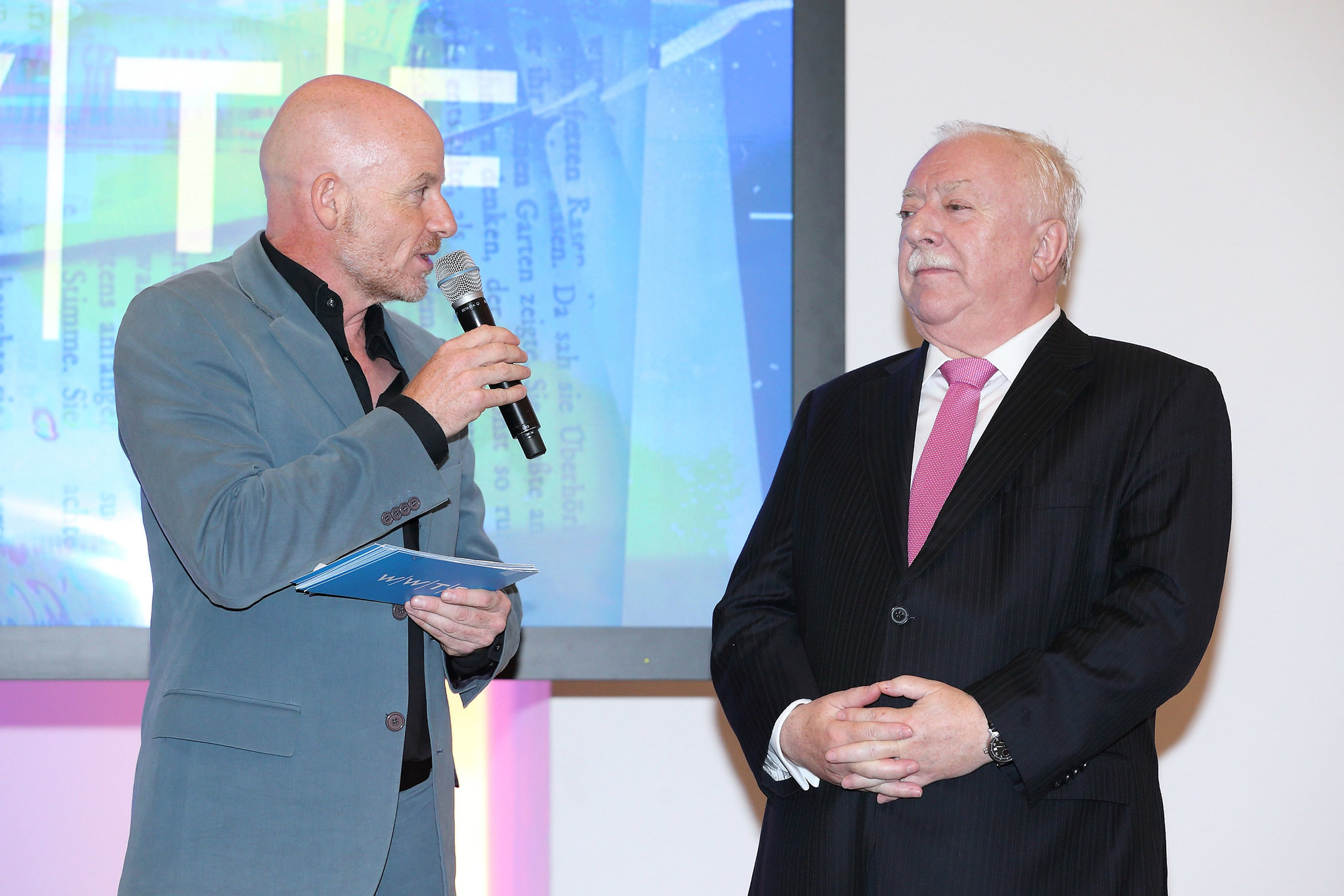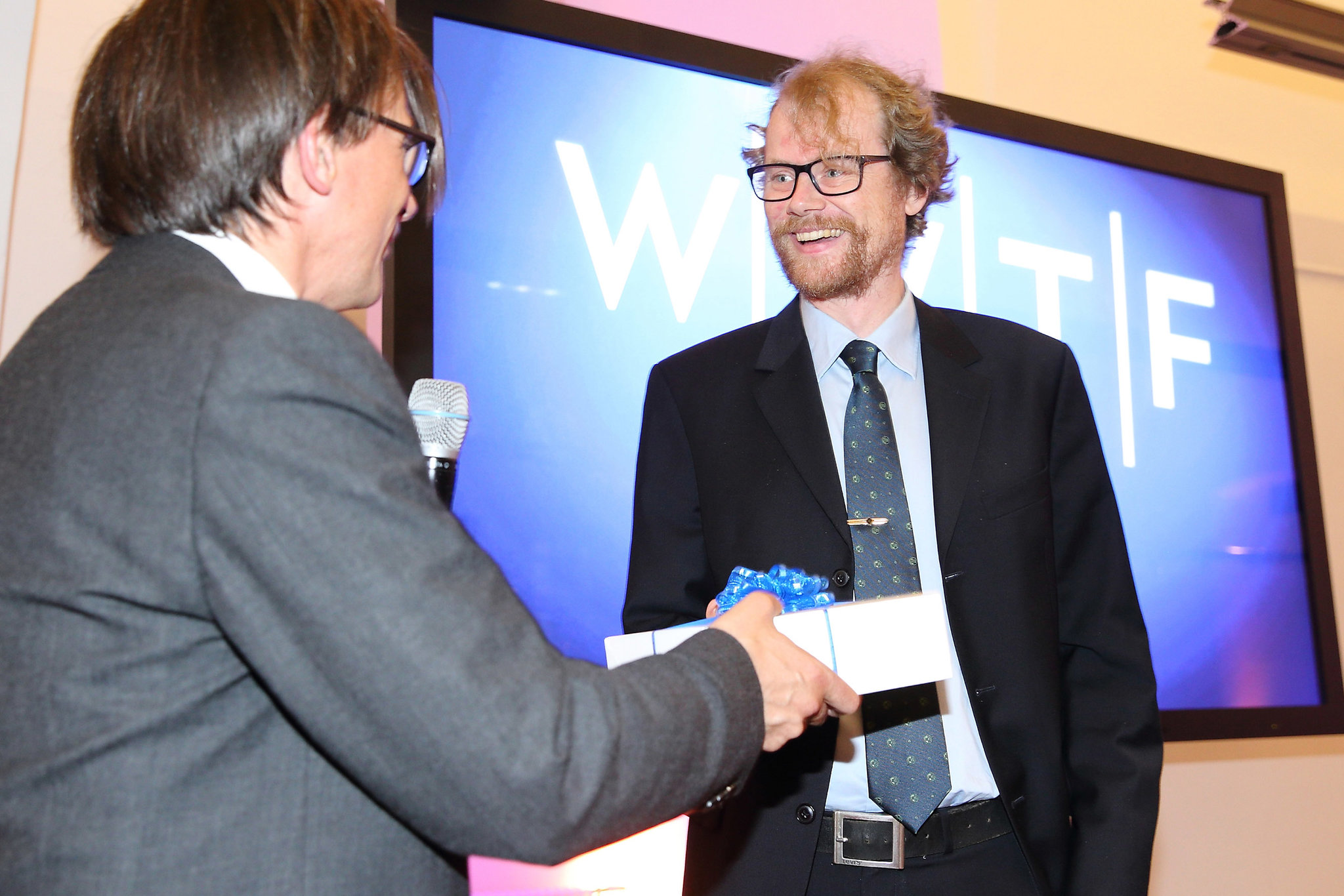 Der Moderator Thomas Rottenberg führte die rund 180 Gäste durch den Abend . Zu den 15 im Jahr 2017 geförderten Projekten wurde jeweils ein Video präsentiert, in dem die ProjektleiterInnen den Inhalt ihrer Forschungstätigkeit beschreiben.