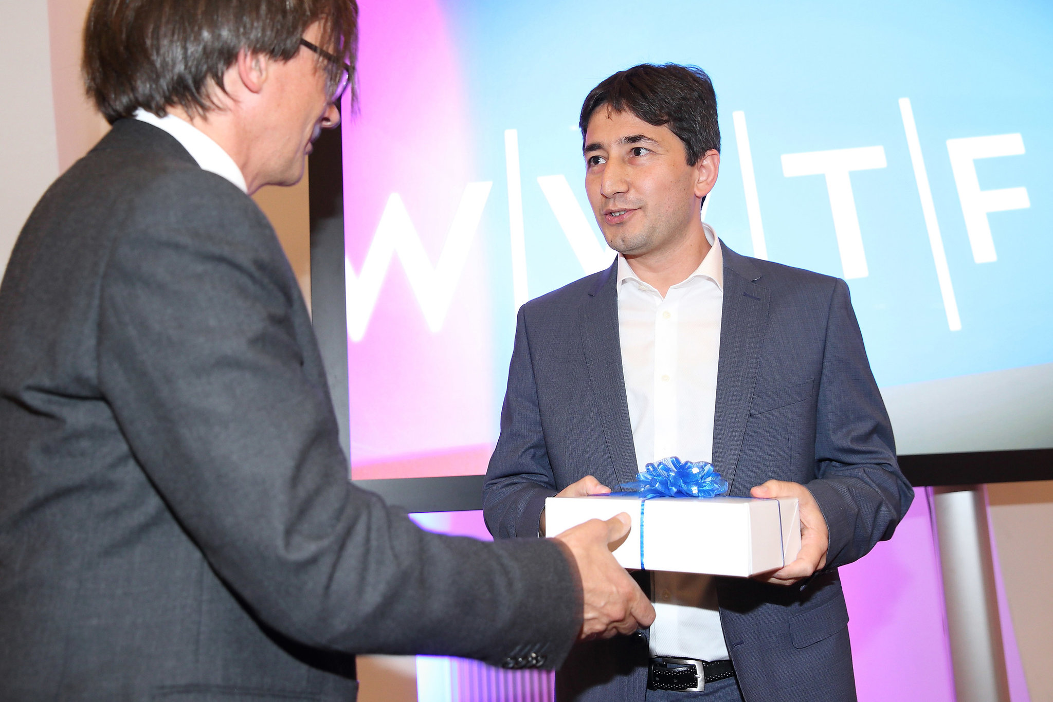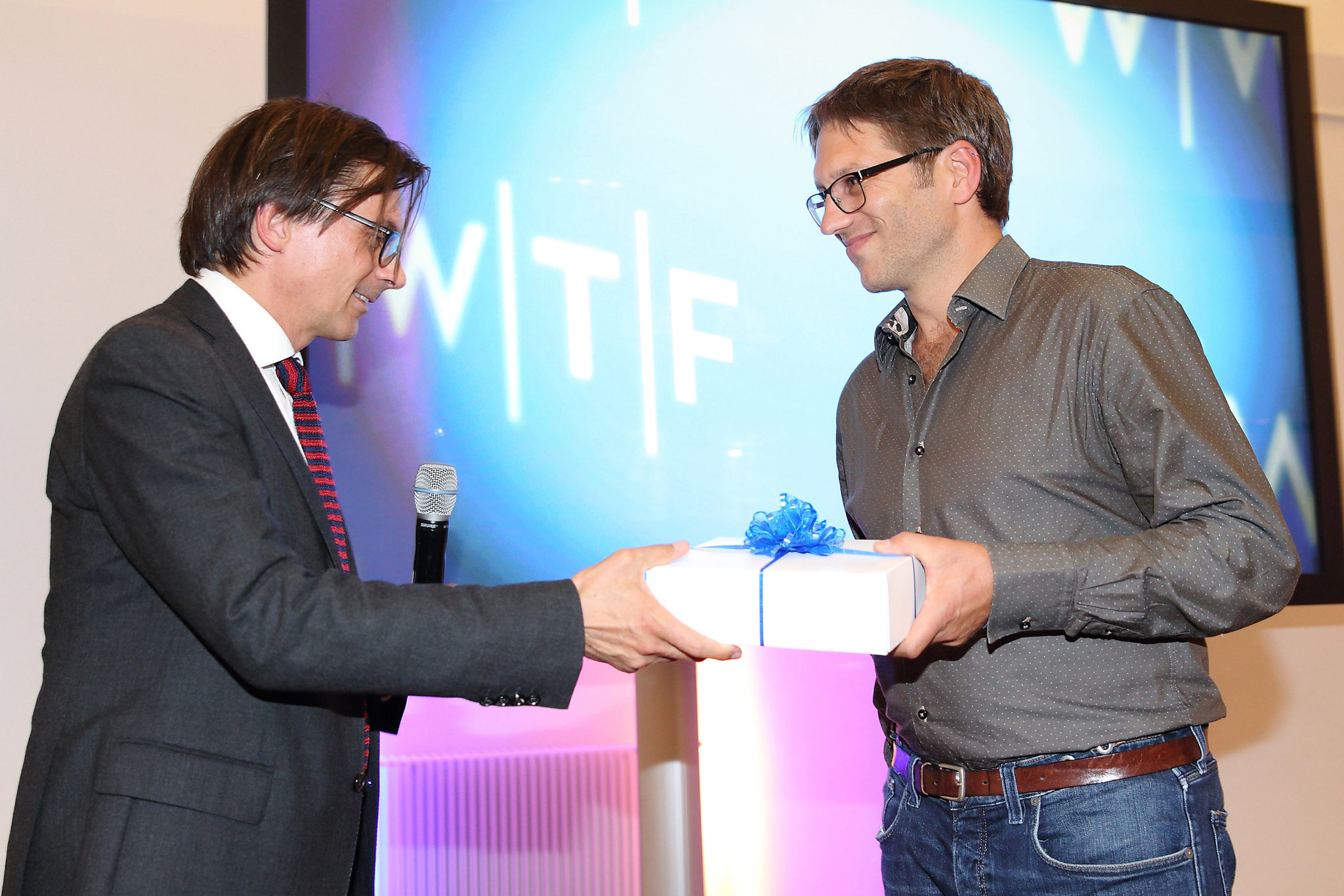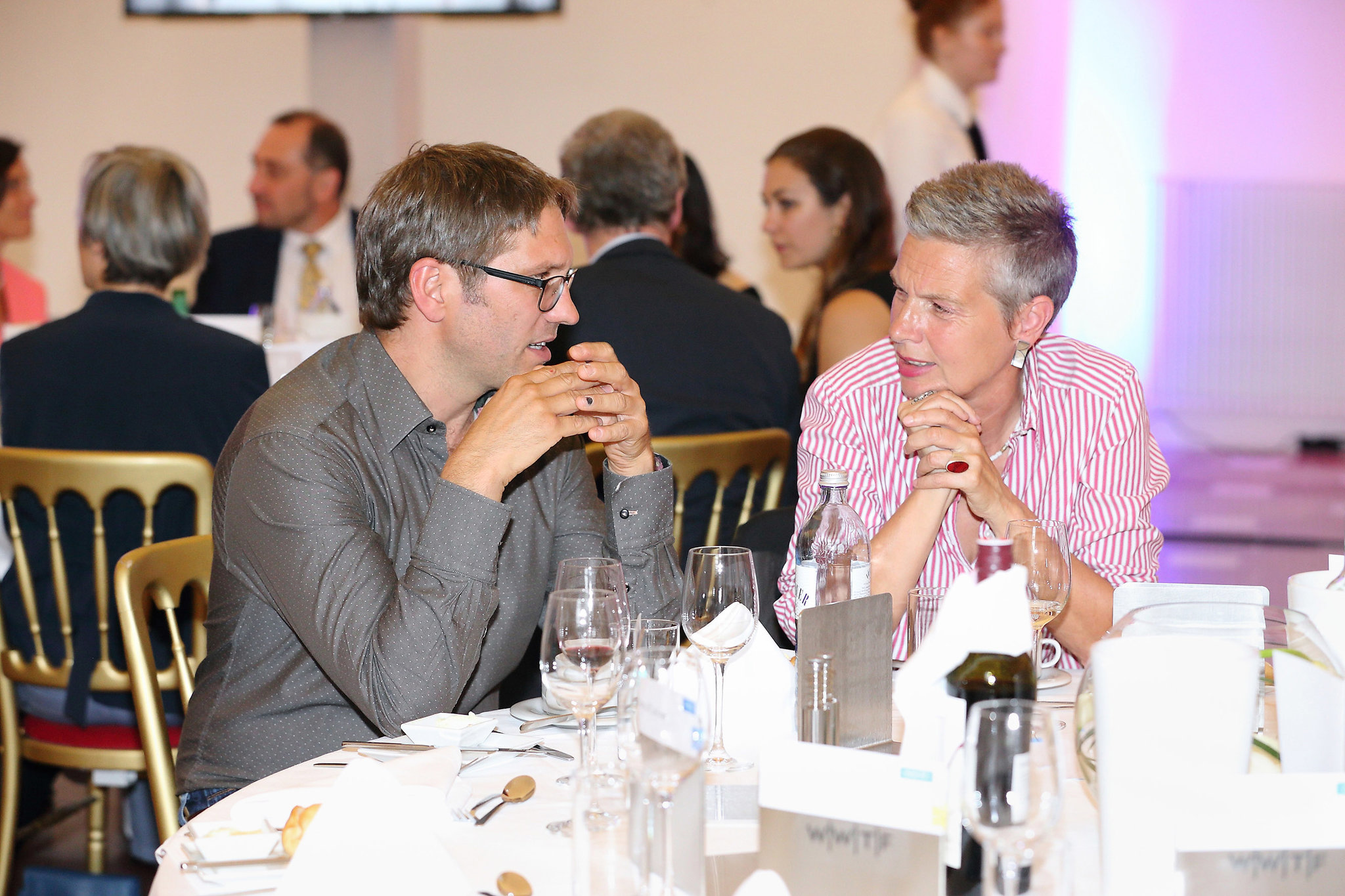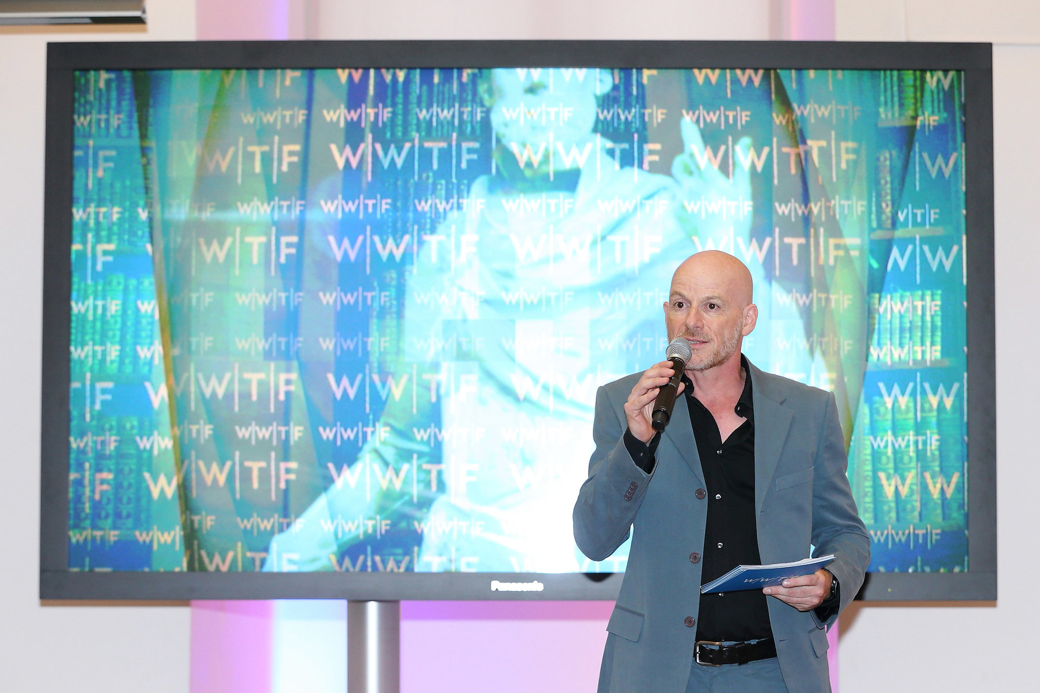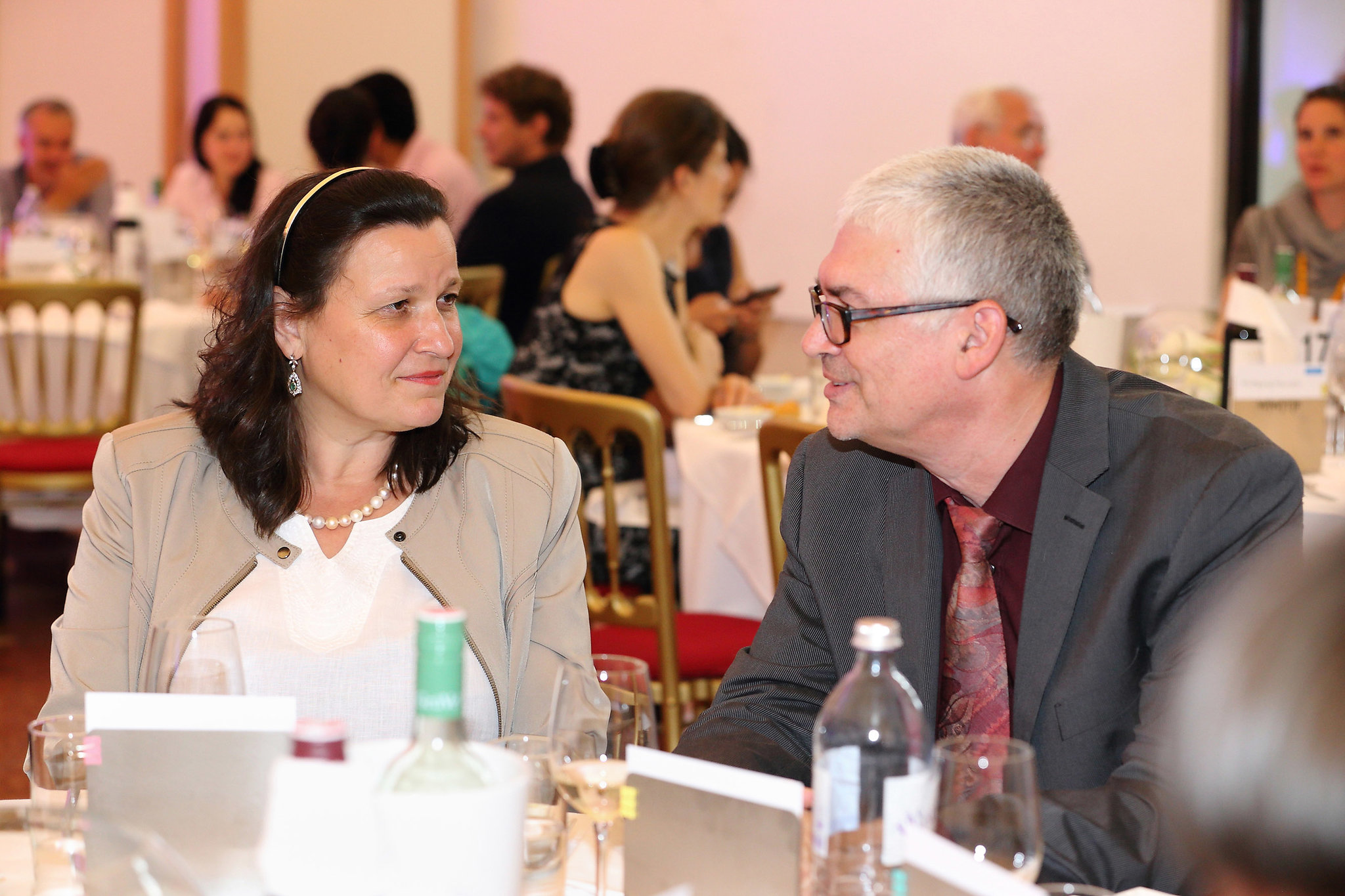 Der Moderator Thomas Rottenberg führte die rund 180 Gäste durch den Abend . Zu den 15 im Jahr 2017 geförderten Projekten wurde jeweils ein Video präsentiert, in dem die ProjektleiterInnen den Inhalt ihrer Forschungstätigkeit beschreiben.