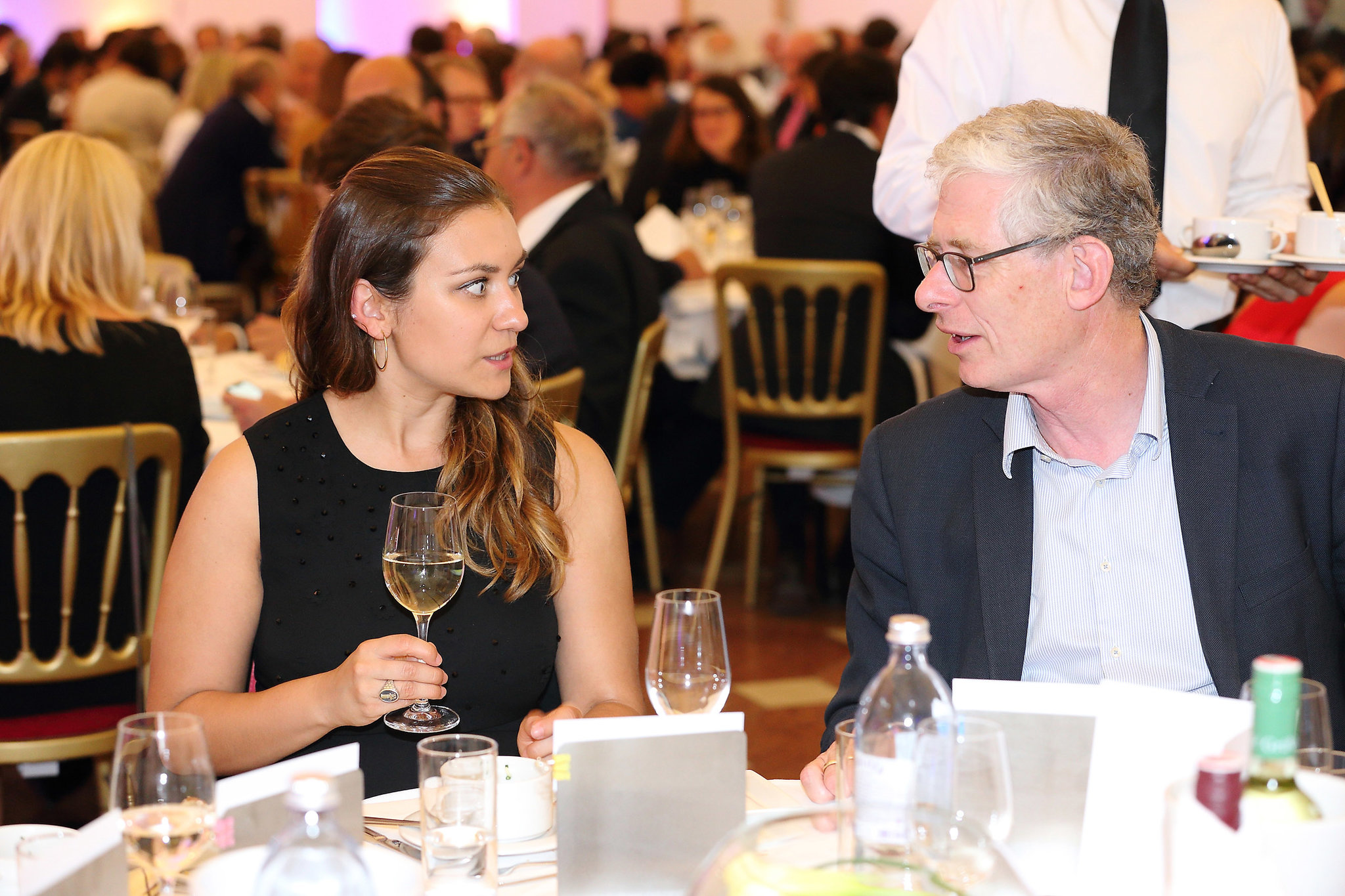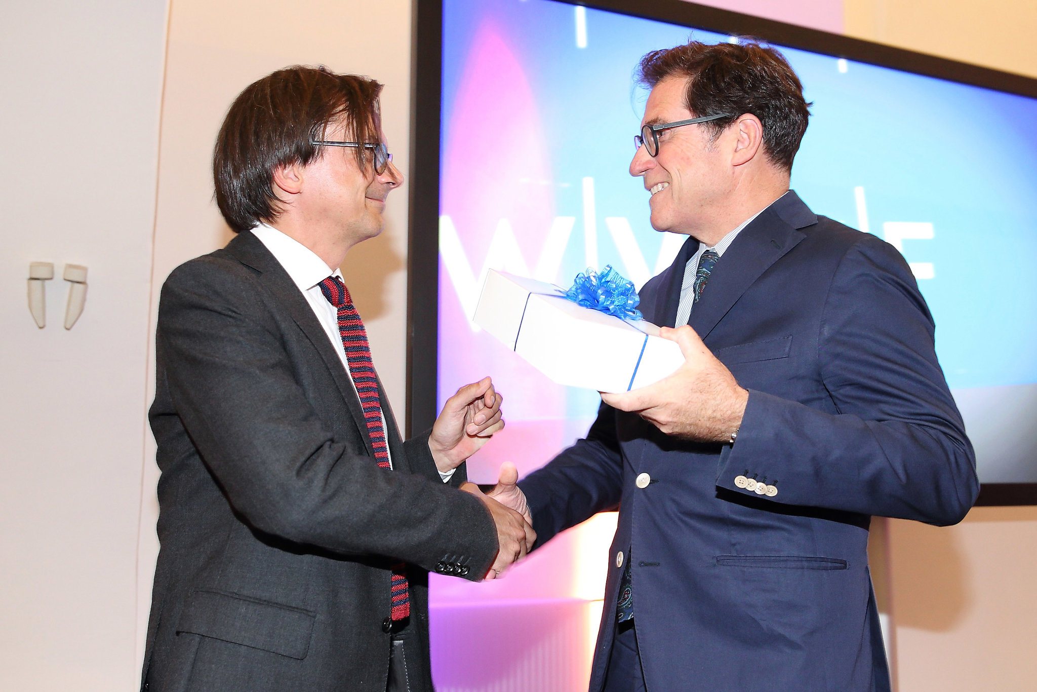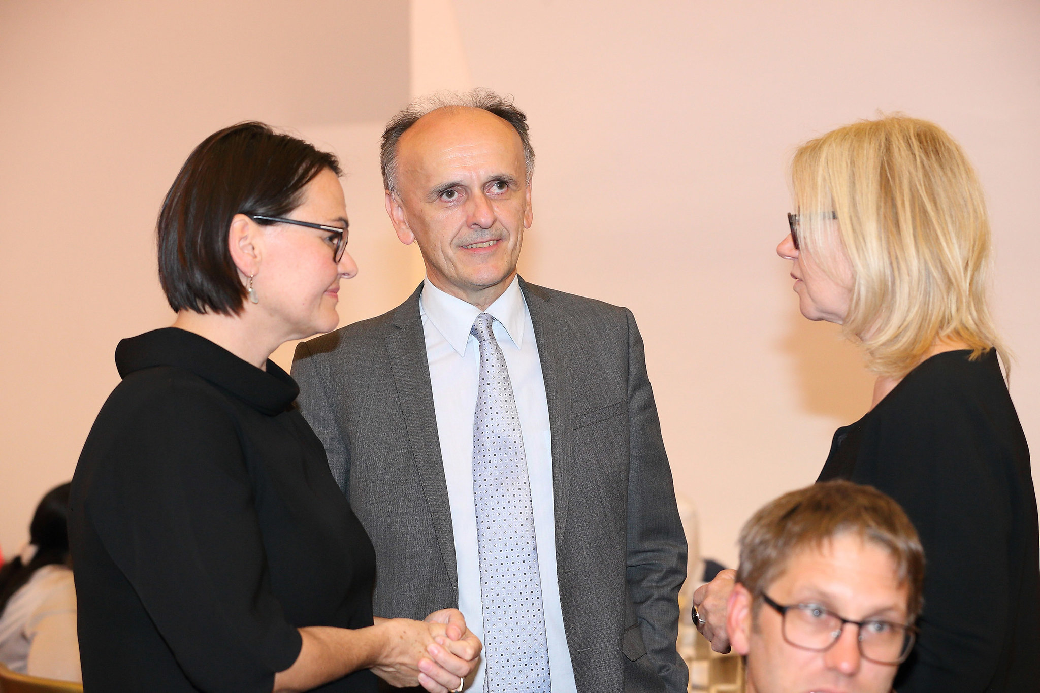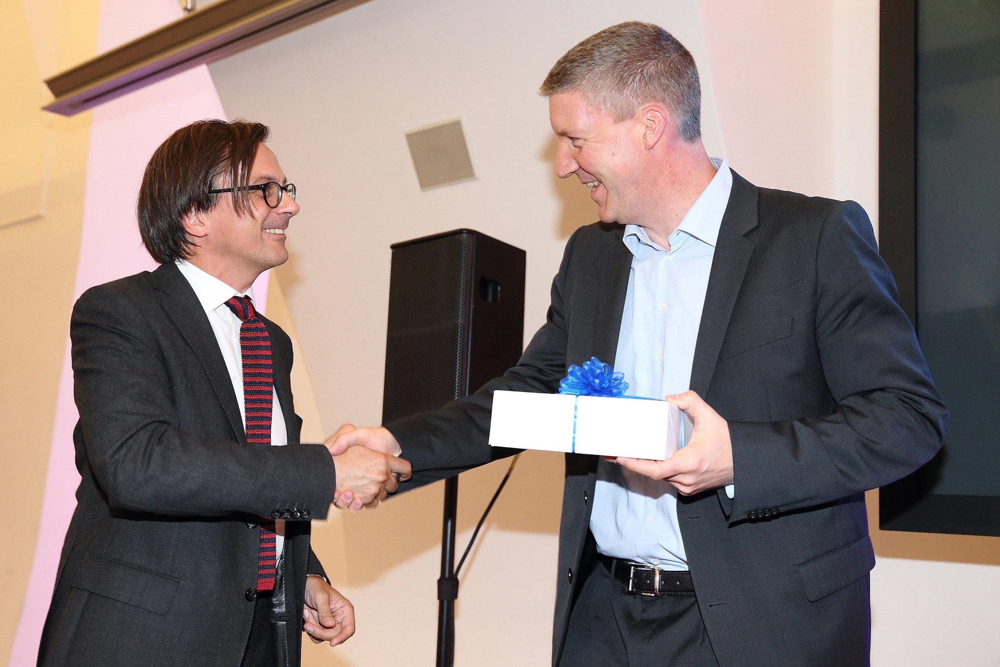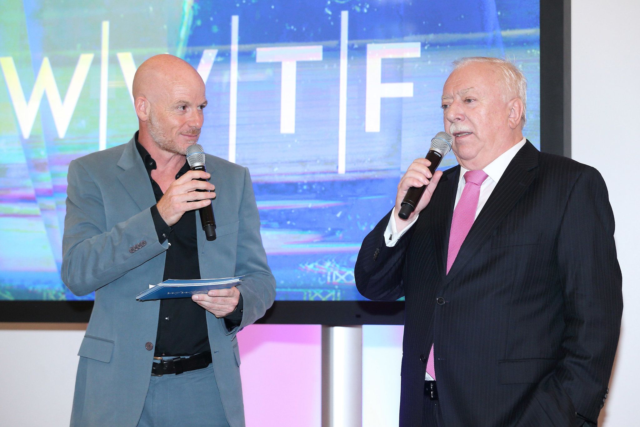 Der Moderator Thomas Rottenberg führte die rund 180 Gäste durch den Abend . Zu den 15 im Jahr 2017 geförderten Projekten wurde jeweils ein Video präsentiert, in dem die ProjektleiterInnen den Inhalt ihrer Forschungstätigkeit beschreiben.